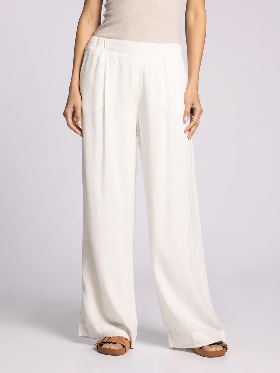 Experience comfort and style with the Anastasia Linen Pants. Crafted from breathable linen in a crisp white shade, these long pants feature an elastic waistband for a flexible, secure fit. Practical side pockets add convenience, making them perfect for everyday wear. Ideal for warm weather, they combine ease and elegance effortlessly.