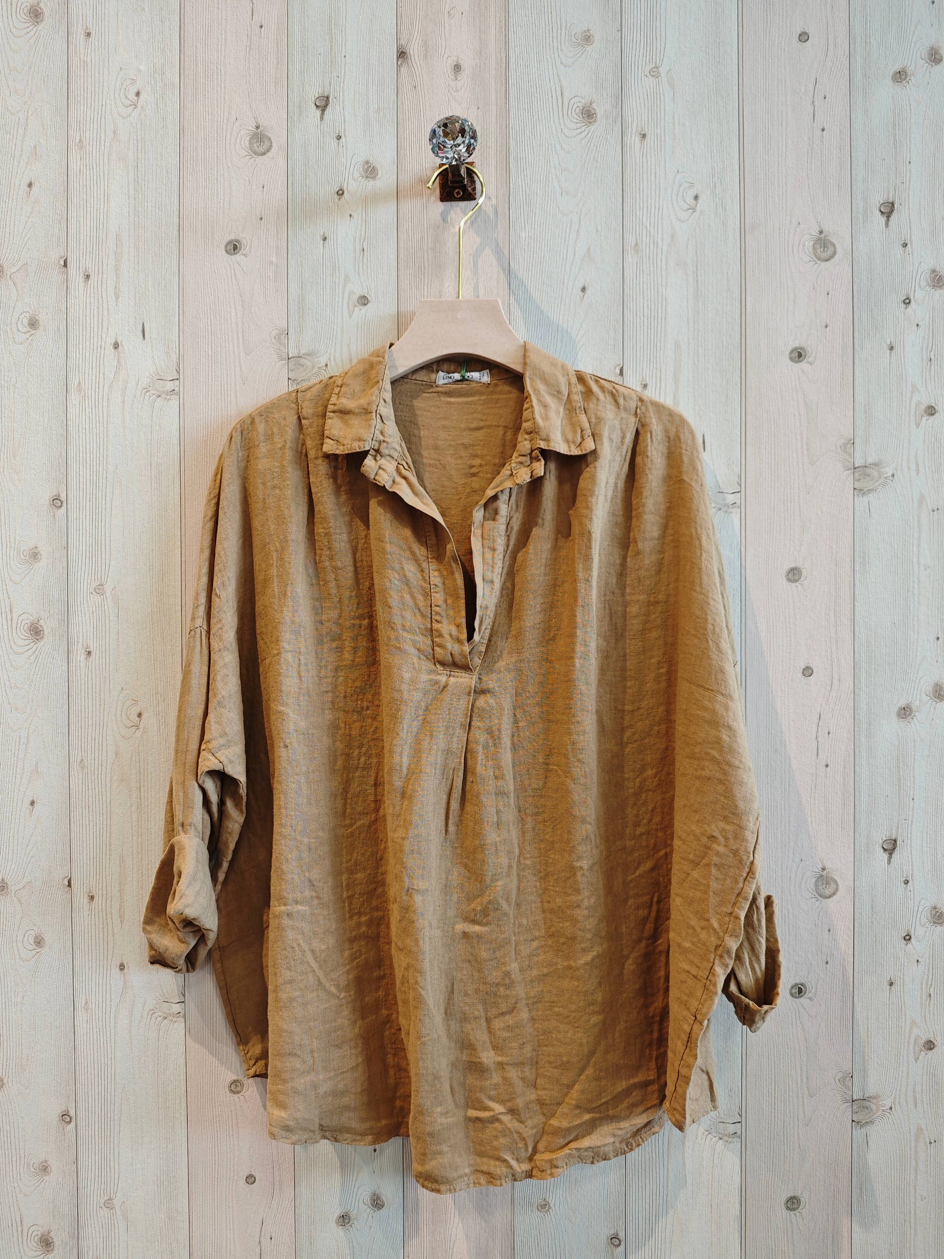 Linen V-Neck - Camel