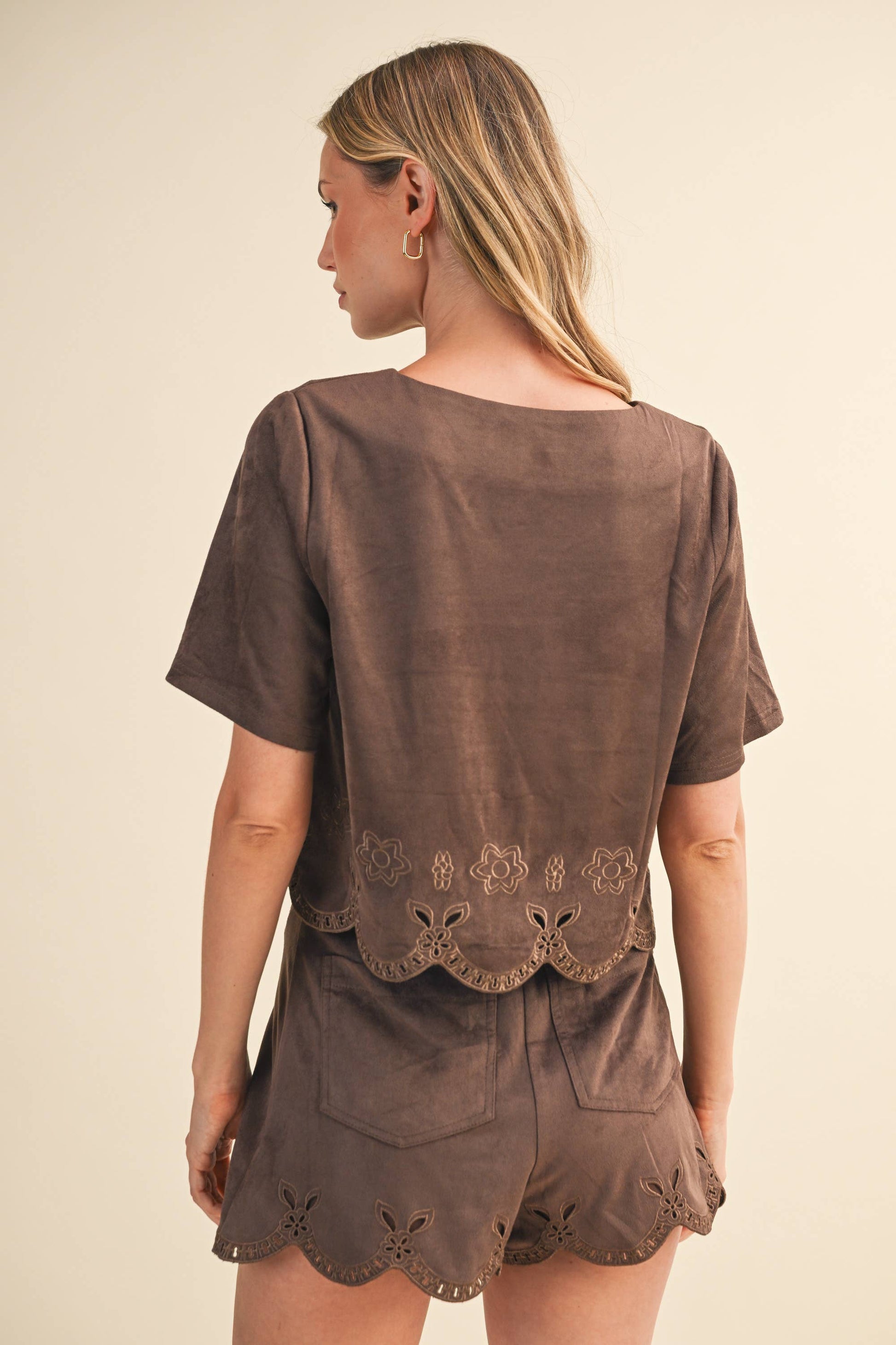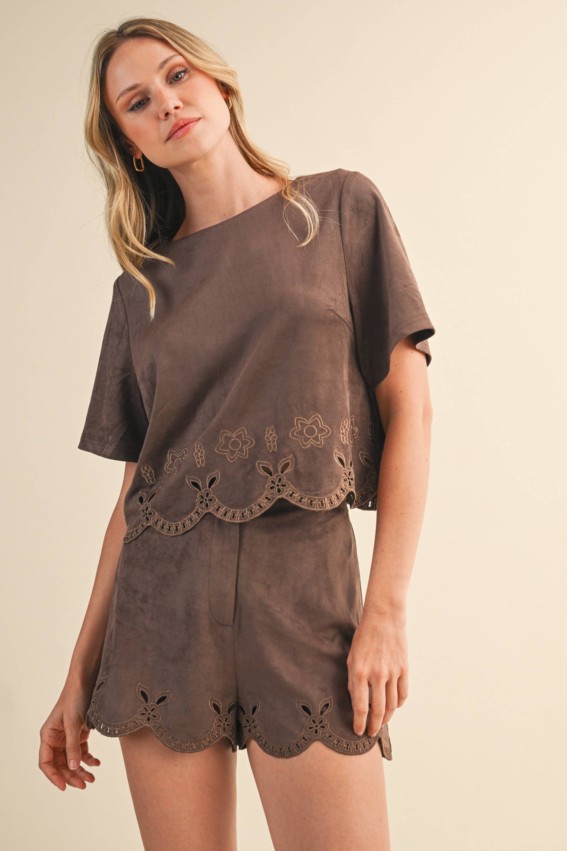 SUEDE BORDER CUTOUT DETAILED SHORTS 92% POLYESTER 8% SPANDEX